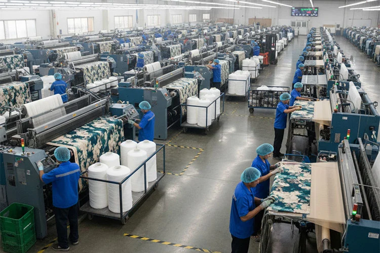 Wir operieren in einer modernen Anlage mit einer Fläche von mehr als 20.000 Quadratmetern und integrieren fortschrittliche Web-, Färbe- und Veredelungstechnologien. Zu den wichtigsten Stärken gehören: